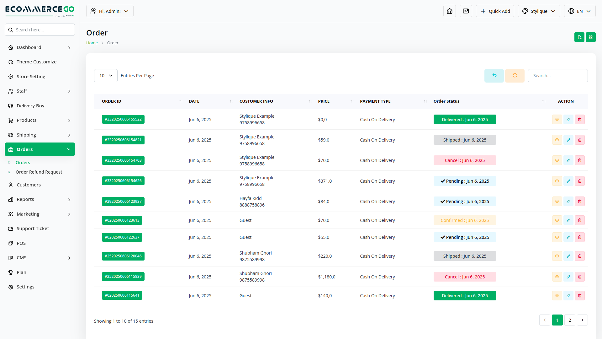 Order List Page